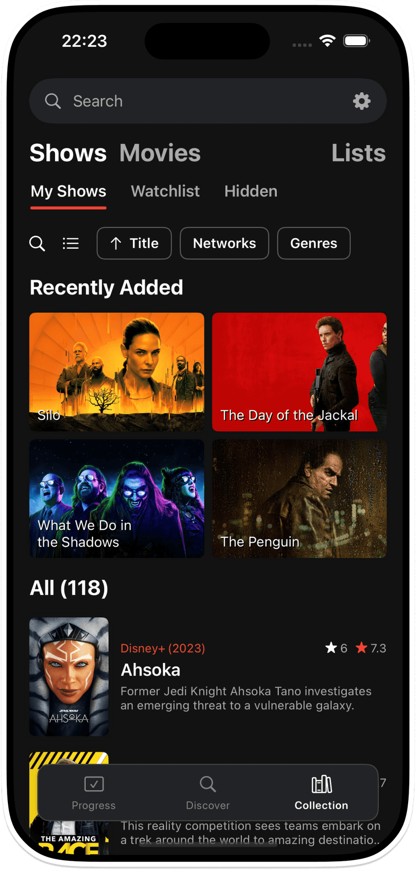 The ultimate Shows and Movies app!Discover and track trending titles, manage your watchlist, and never miss an episode.